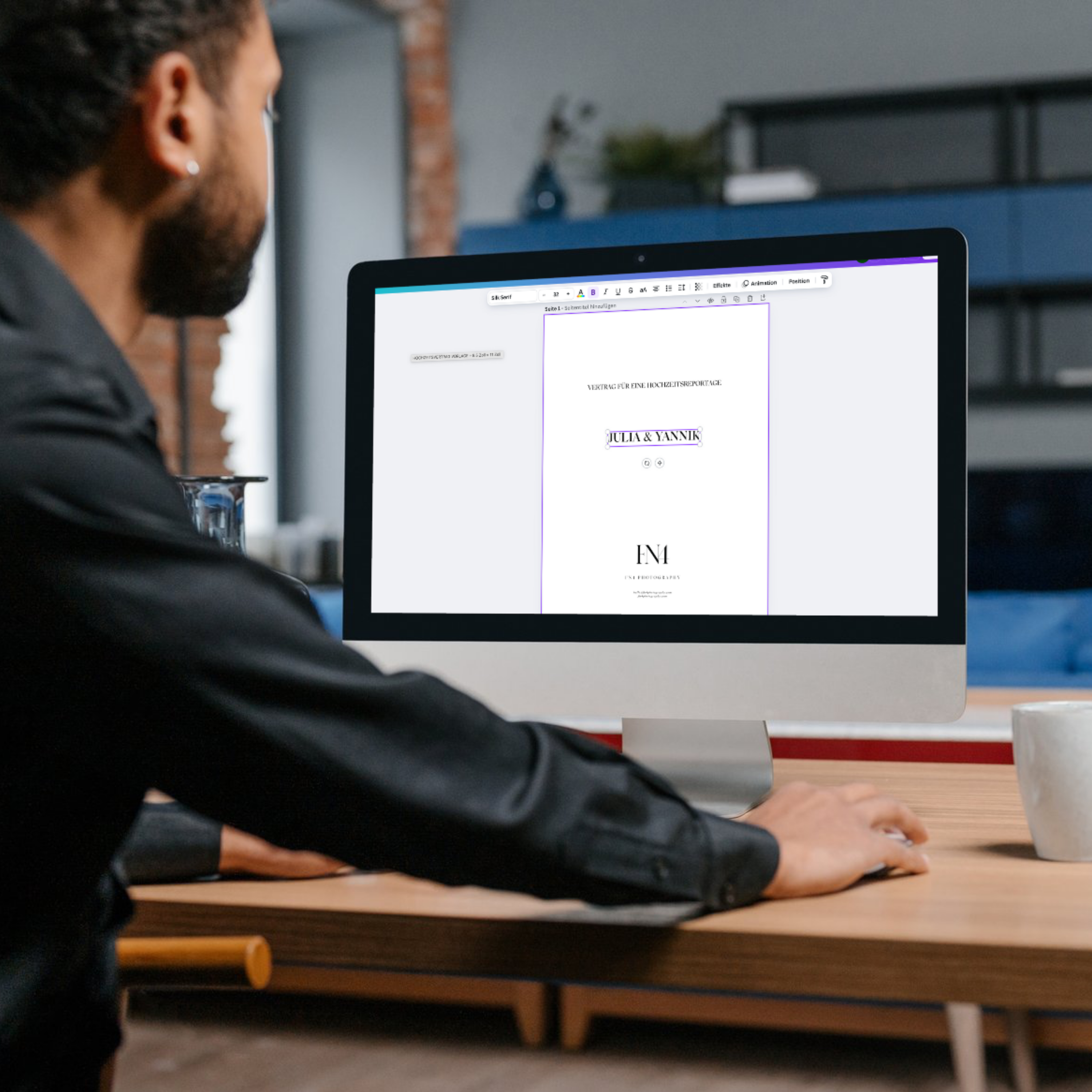 100 % anpassbar: Füge in wenigen Klicks dein Logo, deine Preise und individuellen Leistungen hinzu – einfach & digital. Du erhältst einen Canva Vorlagen Link, den du durch wenige Clicks anpassen kannst. Mit dieser Vertragsvorlage bist Du bestens ausgestattet für die Hochzeitsfotografie.