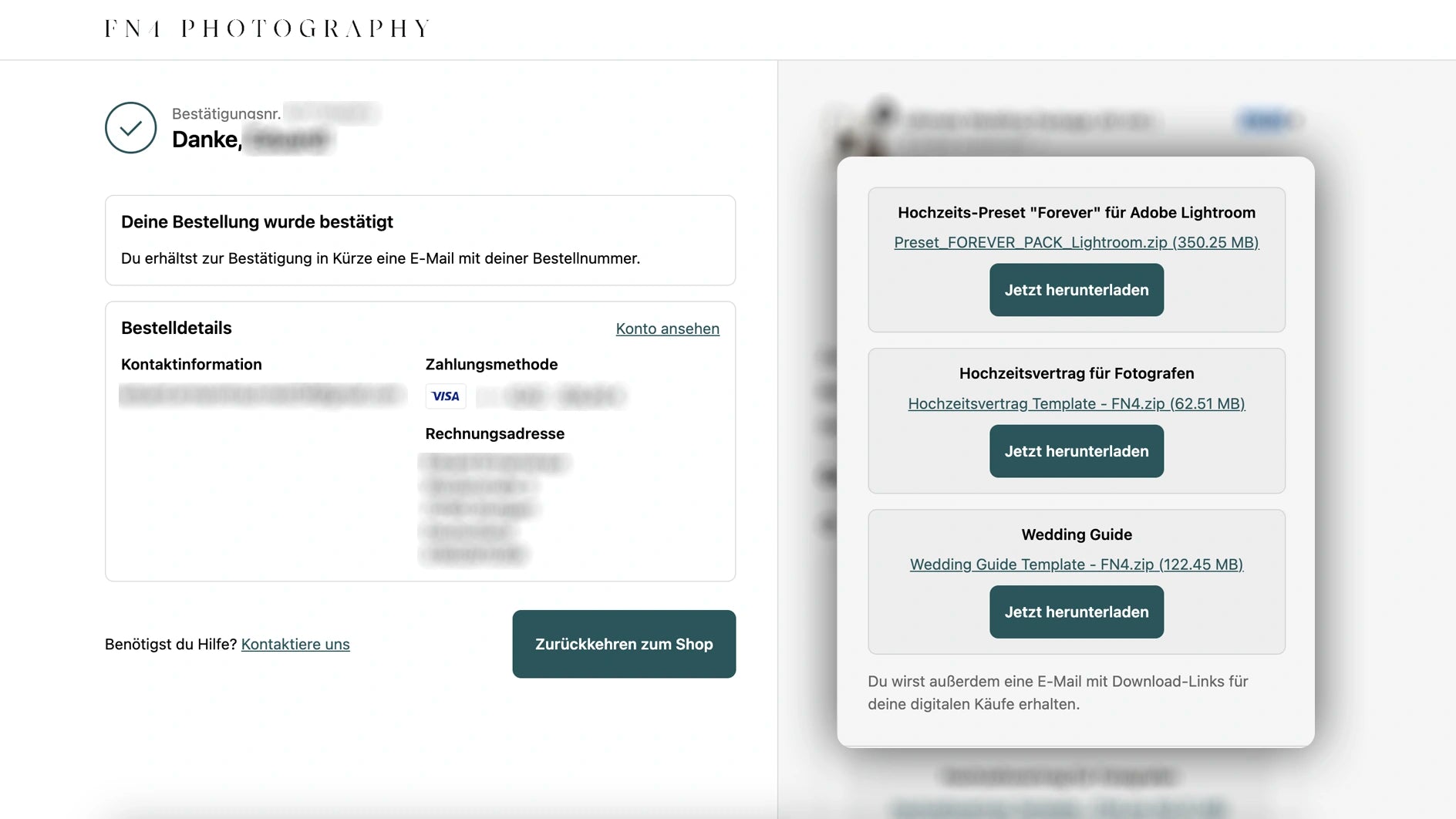 Alle Inhalte sind sofort einsatzbereit und vollständig anpassbar. Kein mühsames Designen, kein Vertragsschreiben – du sparst Zeit und kannst dich auf das konzentrieren, was du liebst: Fotografieren.